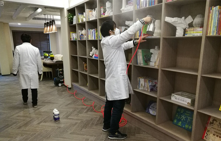針對污染源頭、污染物的種類、空間結構特點,我公司采用技術與施工人員采用了高壓噴槍均勻噴涂、高溫氣體熏蒸等兩種施工技術,高壓噴槍噴灑均勻,細膩,適用于墻面、地板、家具表面的作業(yè),而高溫熏蒸適用于不易滲透的材質,如板材、地毯等,針對污染物種類,我公司先后使用了納米光觸媒、甲醛清除劑、異味清除劑、苯清除劑等高效率除污染產品,針對不同的污染物、污染源,使用不同的產品,對粉刷的墻面,貼墻紙的墻面,使用利純納米光觸媒,進行甲醛清除,這些地方光照量較充足,便于光觸媒對甲醛的分解,對于辦公家具、書桌、儲物柜、地板等污染重災區(qū),采用甲醛清除劑進行處理,針對地毯使用、裝飾物使用異味清除劑,針對不同污染物,做分別處理。在每一遍施工中,我們不放過任何一個可能釋放甲醛的污染源頭,施工時輕拿輕放,施工后將所有物品回歸原位,良好的施工態(tài)度得到了相關負責人的肯定。施工取得了圓滿成功。