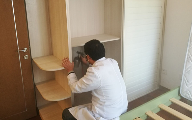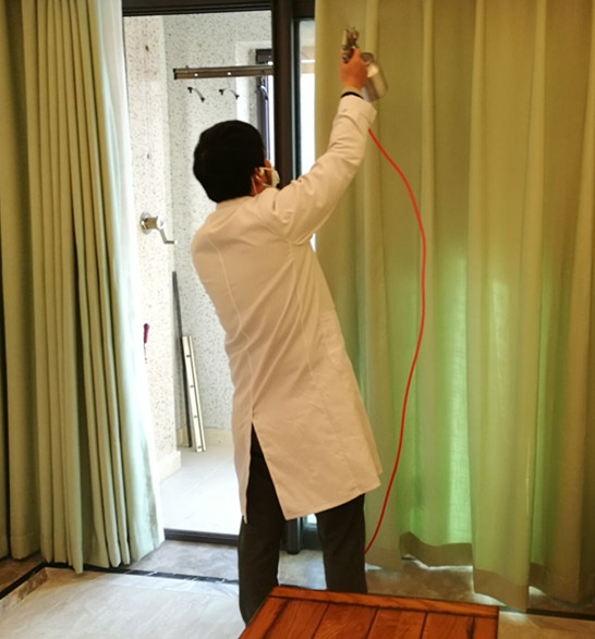 使用藥劑及施工方案: 主要藥劑有甲醛消除劑、納米光觸媒。根據(jù)這套房子室內(nèi)裝修情況,對(duì)于集中定做的柜子和抽屜,我公司施工人員使用甲醛清除劑對(duì)柜子和抽屜進(jìn)行全面噴灑,重點(diǎn)治理,施工時(shí)保證全面均勻、不留死角,另外對(duì)墻面和沙發(fā),坐墊窗簾等布飾使用光觸媒治理,在分解污染源的同時(shí),增加光觸媒的受面,能分解游離的甲醛其他污染物,下面為施工現(xiàn)場(chǎng)照片:
